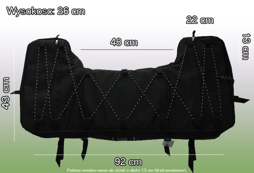 Przedmiotem sprzedaży jest Torba/kufer na quad dedykowany na przedni stelaż quada, ale można go przypiąć również do tyłu.