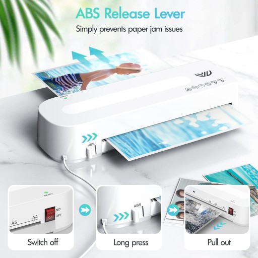 - GŁADKA OD POCZĄTKU DO KOŃCA: Ciesz się płynnym procesem i wynikami, ulepszony 2-rolkowy system ogrzewania zapewnia laminację bez pęcherzyków i zmarszczek, a dźwignia ABS z łatwością usuwa zacięcia papieru.