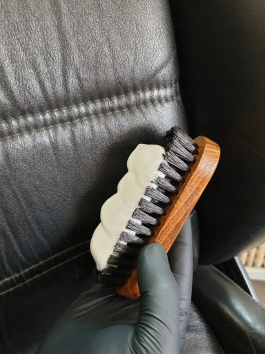 Skórę czyścimy okrężnymi ruchami miejsce przy miejscu. Można to przyrównać do czyszczenia szczoteczką zębów. Nie musimy mocno dociskać szczotki. Następnie piankę zbieramy ze skóry dołączoną mikrofibrą. Naturalnie powierzchnię należy wcześniej odkurzyć zwracając uwagę na wszelkie zakamarki. Po czyszczeniu czekamy kilka godzin aby skóra wyschła. Nie wolno przyspieszać tego procesu. Może to doprowadzić do wysuszenia skóry. Na koniec nakładamy cienką warstwę środka konserwującego Leder Versiegelung. Leder Versiegelung należy nanosić za pomocą miękkiej szmatki wykonując okrężne ruchy. Przed użyciem należy poczekać, aż środek wyschnie.