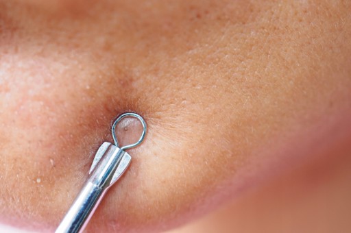 - Usuwanie zaskórników: Przyłóż pętelkę łyżeczki do zaskórnika, tak aby znalazł się w jej środku, i delikatnie dociśnij skórę, wypychając zaskórnik na powierzchnię.