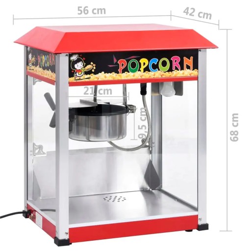 Przygotuj pyszny popcorn w kilka minut dzięki naszej maszynce do popcornu! Jest to prawdziwa atrakcja, zaprojektowana specjalnie na potrzeby profesjonalnego cateringu oraz domowe. Można ją łatwo obsłużyć za sprawą 3 przycisków, dzięki czemu zrobienie popcornu jest szybkie i proste. Maszynka ta ma moc 1400 W i może szybko osiągnąć odpowiednią temperaturę roboczą. Przezroczysta obudowa z wentylowanymi szybkami umożliwia obserwowanie strzelającego popcornu. Podświetlane wnętrze pozwala na kontrolowanie przygotowania każdej porcji, aby osiągnąć perfekcyjne wyniki. Maszynka zawiera pojemnik ze stali nierdzewnej z wbudowanym systemem mieszania. Powłoka teflonowa tego wyjmowanego pojemnika zapobiega przypiekaniu się popcornu do jego powierzchni. Urządzenie ma odchylane drzwiczki ułatwiające nabieranie i serwowanie popcornu. Dzięki lekkiej konstrukcji możesz z łatwością przestawić je z jednego miejsca w drugie.