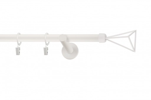 Seria karniszy w bieli składa się z drążek o przekroju 19 milimetrów, wsporników ściennych oraz kilku zakończeń dekoracyjnych. Wśród nich zakończenie Luna – minimalistyczne zakończenie w kształcie zaślepki. Zaletą takiego rozwiązania jest pewność, że karnisz nigdy nie wyjdzie z mody i będzie spełniał swoje zadanie nawet gdy postanowimy zmienić wystrój. Inna propozycja to Walec z dwoma małymi frezami. Dla tych, którym bliższe są klasyczne rozwiązania, oferujemy zakończenie Kula Optic. Największym zainteresowaniem wśród naszych Klientów cieszy się zakończenie w kształcie geometrycznej figury przestrzennej - Space.