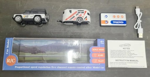 ✅Autko R/C jest bardzo szybkie i zwrotne, a zarazem poręczne, mieści się w dłoni, karoseria samochodu jest metalowa, a autko wygląda bardzo solidnie i jest bardzo ładnie wykonane jakościowo, dodatkowo zestaw zawiera przyczepę kampingową z otwieranymi drzwiami którą można założyć lub zdjąć z haka pojazdu