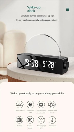1. 【natural wake-up】: wake-up clock, natural wake-up lights to simulate sunrise, help you sleep and wake up naturally