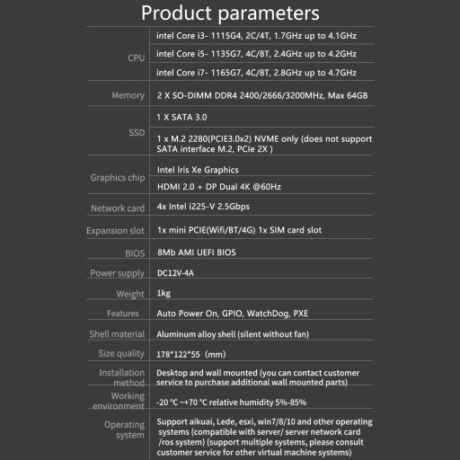 2.5G Soft Router 11th Celeron N5105 4 Intel i225 Nics 2*NVMe 2*DDR4 Fanless Mini PC pfSense Firewall Appliance VPN Server