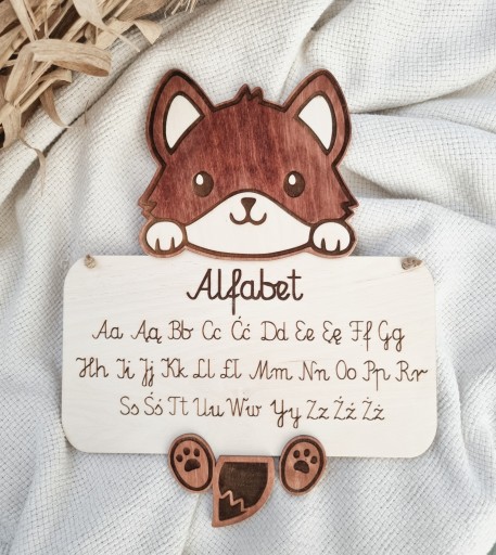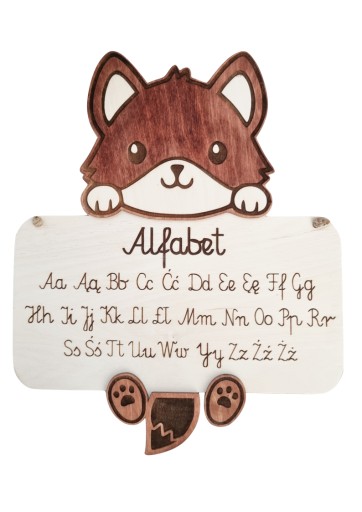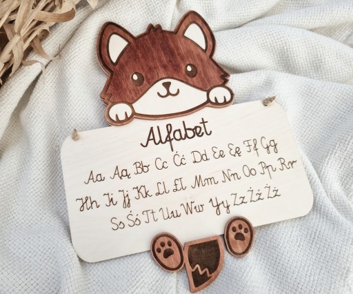 Drewniana tabliczka do dziecięcego pokoju z grawerowanym alfabetem