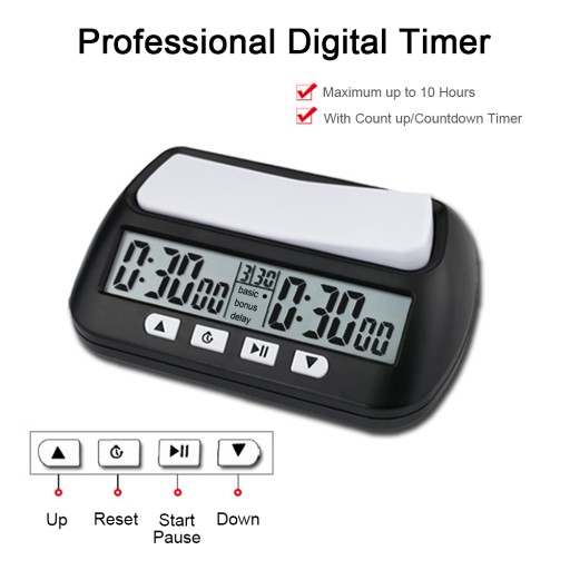 Ten cyfrowy zegar jest idealny do szachów i innych gier, które wymagają odliczania, odliczania, premii i opóźnień. Jest lekki i mały, dzięki czemu wygodnie mieści się w większości toreb i można go zabrać ze sobą na imprezy klubowe lub turniejowe.