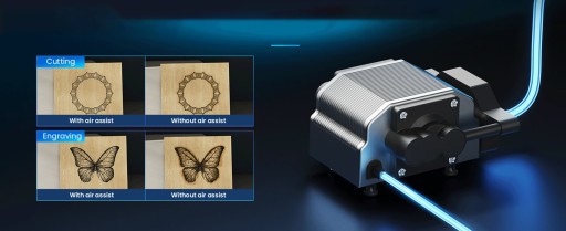 Pompa Air-assist może być automatycznie włączana i wyłączana i jest bezpośrednio kontrolowana przez lightburn, poprawiając precyzję i jakość cięcia.