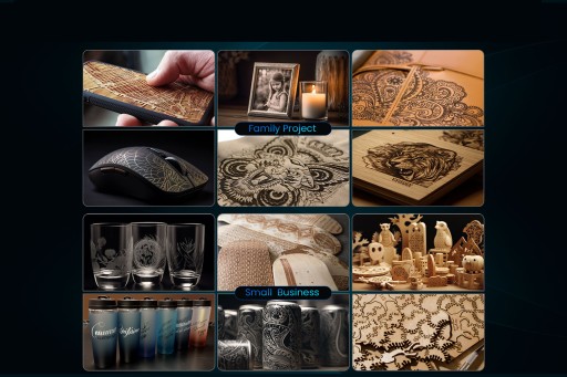 Laser o mocy 33 W może ciąć lub grawerować ponad 1000 różnych materiałów, takich jak drewno, stal, skóra, srebro, akryl, tkaniny i inne.