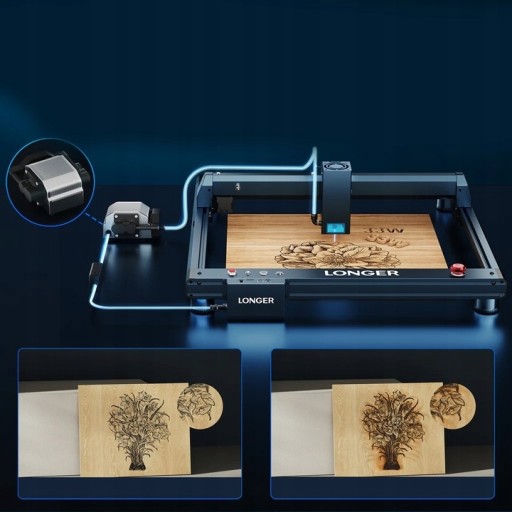 Laser B1 jest wyposażony w nową 32-bitową płytę główną, która umożliwia grawerowanie z prędkością do urządzenia 36 000 mm/min, cztery razy szybciej niż proste do grawerowania laserowego. Ponadto ciche sterowniki TMC2209 skutecznie redukują hałas podczas pracy, dodatkowo i przyjemniejsze wrażenia.