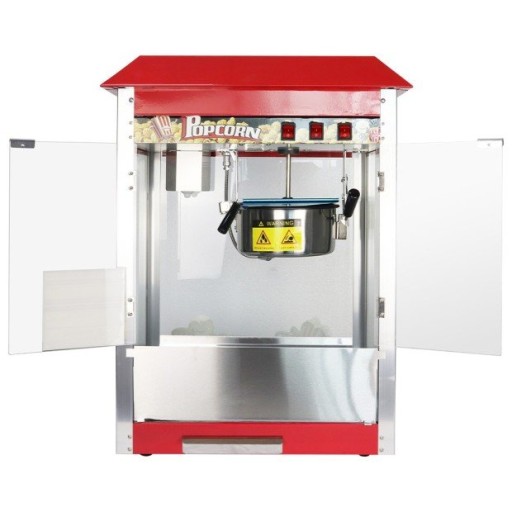 Wyposażony w opcję podgrzewanie i oświetlenie. "Szklane pudełko" zapala się i utrzymuje popcorn w cieple. Dzięki przezroczystym ściankom ze szkła hartowanego zapewniającym maksymalne bezpieczeństwo, maszyny do popcornu są naprawdę zabawnym i atrakcyjnym dodatkiem na każdą imprezę i gwarantują, że wszyscy będą zadowoleni.