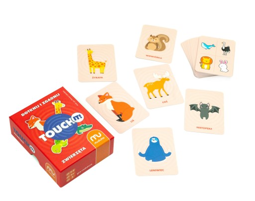 Szukasz prostej gry, która przypadnie do gustu każdemu bez względu na wiek? W "Touch it! Zwierzęta" możesz zagrać nawet z pięciolatkiem, ale i dorośli nie będą narzekać na nudę. W tej wyjątkowej grze obrazek znajdujący się na rewersie karty pokryty jest specjalnym, wypukłym lakierem. Na awersie znajduje się ta sama ilustracja, ale w towarzystwie trzech innych. Zadaniem graczy jest odgadnięcie, który z czterech obrazków z przodu karty, jest pokazany na odwrocie - posługiwać można się tu jednak wyłącznie dotykiem!