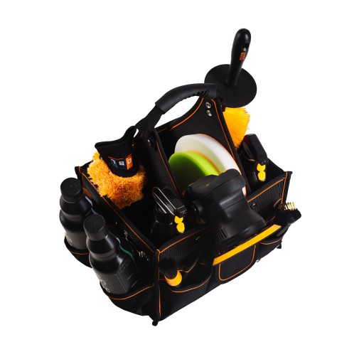 Mała, poręczna torba sprawdzająca się na wyjazdy na bezdotyk czy zloty. Z powodzeniem zmieści 4-6 butelek produktów, fibry i pędzelki. Wykonana w 100% z poliestru co czyni ją bardzo odporną. Zmieści się nawet do bardzo małych bagażników będąc przy tym bardzo wygodną i poręczną w użytkowaniu.