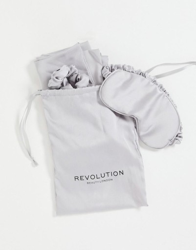Doskonały luksusowy zestaw pielęgnujący i chroniący skórę i włosy Revolution Satin Sleep Set w kolorze srebrnym.
