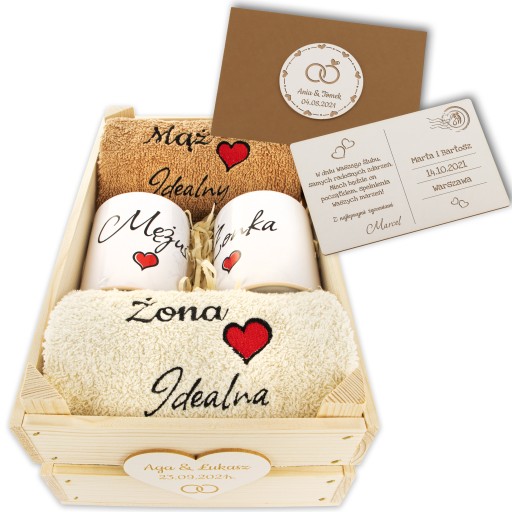 PREZENT ŚLUBNY ŚLUB RĘCZNIKI KUBKI ROCZNICA ŚLUBU ŻONA MĄŻ KARTKA