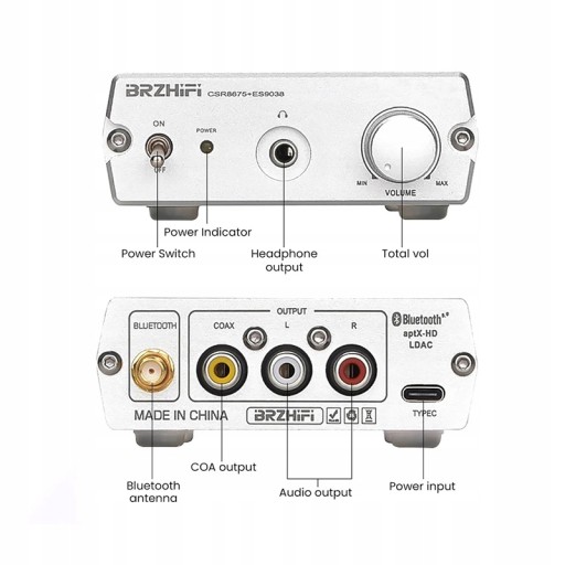 5: Adopt ES9038Q2M audio decoding, take the lead in using the professional decoding chip on the Bluetooth receiver, abandon the complex functions of the decoder, and achieve the professional HIFI level of Bluetooth decoding, wireless fever level.