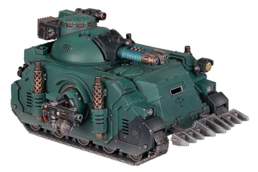 The Predator is perhaps the best known and most widespread variant of the basic Rhino chassis, equipped with superior armour protection and firepower, but sacrificing the Rhino’s troop transport capacity entirely. The Predator Support Tank is designed to field a wide variety of armament configurations, allowing it to excel in specific battlefield roles.