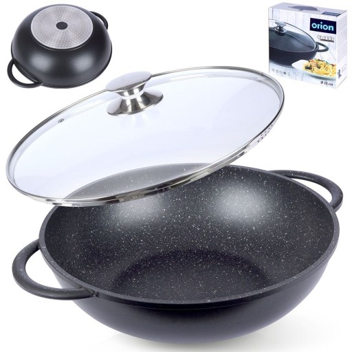 Nieprzywierająca patelnia wok wyposażona w pokrywkę z odpowietrznikiem pary. Patelnia sprawdzi się do smażenia oraz duszenia, przygotujemy w niej różnego rodzaju mięso i warzywa, jak i dania inspirowane kuchnią azjatycką. Idealna do przygotowania makaronów. Nieprzywierająca powłoka pozwoli na wygodne przygotowanie dań, przy użyciu małej ilości tłuszczu. Efektownie prezentuje się w kuchni oraz podczas serwowania dań bezpośrednio na stole. W naszej ofercie również inne naczynia z serii GRANDE. Oryginalny produkt czeskiej marki Orion. Wyprodukowano zgodnie z europejskimi standardami.