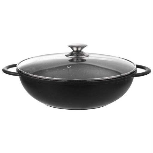 Patelnia wok z pokrywką granitowa GRANDE 32 cm