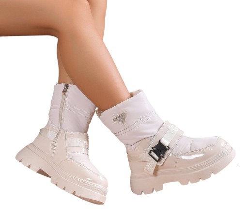 ELEGANCKIE ŚNIEGOWCE.WYKONANE Z MATERIAŁU TEKSTYLNEGO,DODATKOWO OZDOBIONE EKOSÓRĄ WOKÓŁ PODESZWY.ZAPINANE NA SUWAK Z OZDOBNĄ KLAMERKĄ.
