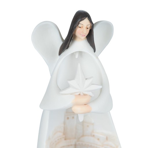 Odkryj szopkę, gdzie anielska opatrzność czuwa nad Świętą Rodziną. Wykonana z wysokiej jakości żywicy, każda figura oddaje delikatność i wyjątkowość tego świątecznego momentu. Anioł, w blasku światła LED, dodaje aurę niesamowitej magii.