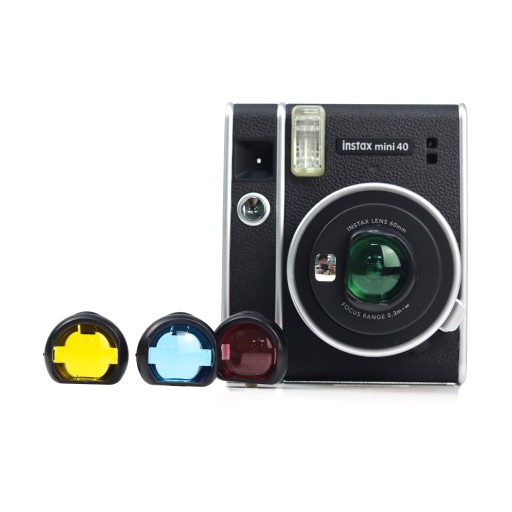 Filtry w sposób szybki i prosty można nałożyć na obiektywie aparatu Fujifilm INSTAX MINI 40.