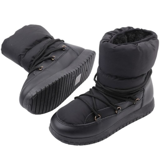 ŚNIEGOWCE DAMSKIE OCIEPLANE BOTKI NA PLATFORMIE BUTY ZIMOWE CZARNE CIEPŁE