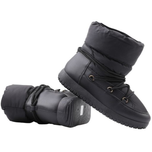 ŚNIEGOWCE DAMSKIE OCIEPLANE BOTKI NA PLATFORMIE BUTY ZIMOWE CZARNE CIEPŁE