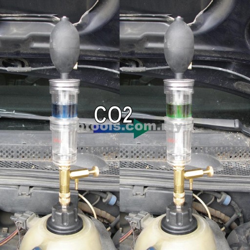 Przyrząd pozwala na łatwą diagnozę i szybkie wykrycie uszkodzeń uszczelki pod głowicą. W przypadku uszkodzonej uszczelki pod głowicą lub samej głowicy część gazów spalinowych. zawierających m.in. CO2 trafia do układu chłodzenia. Zasada działania przyrządu opiera się właśnie na pomiarze zawartości CO2 w układzie chłodzenia. Płyn reakcyjny ( brak w zestawie ) w komorze testera będzie reagował z gazami z układu chłodzenia i w przypadku zwiększonej zawartości CO2 zmieni barwę. Dwukomorowa konstrukcja przyrządu (z filtrem pomiędzy komorami) pozwala na odseparowanie pozostałości w pierwszej komorze (np. kropel płynu chłodniczego). które mogłyby negatywnie wpłynąć na wynik testu.