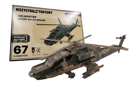 Przedstawiamy Państwu wyjątkowy model BOEING AH-64 APACHE, który został wykonany z ekologicznego materiału BIANKA. Te niezwykłe puzzle 3D to świetny sposób na spędzenie wolnego czasu dla dzieci i dorosłych, a także doskonała okazja do rozwijania manualnych umiejętności.