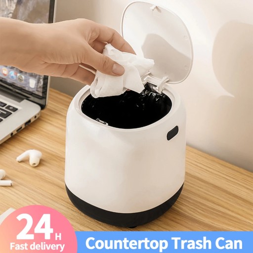 5.Practical and Stylish: This creative and innovative table waste bin combines practicality with style. Table waste bin's sleek design and versatile usage make it an ideal addition to any room or space. Whether you need a waste bin next to your bed or a stylish organizer for your vanity, our compact trash can meets all your needs while adding a touch of elegance to your surroundings.