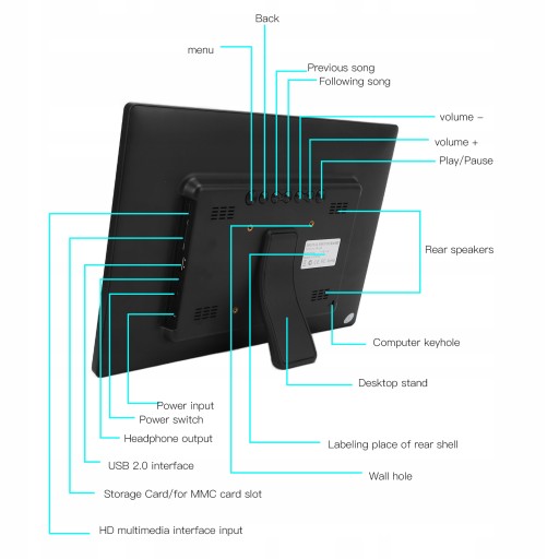 1. Duży rozmiar, wysoka rozdzielczość: rozdzielczość 1280 x 800, współczynnik wyświetlania 16: 9, 13-calowy ekran LED, jasność 250 lm, zapewniają doskonały obraz i doskonałe kolory, odtwarzają każdą wspaniałą chwilę, zapewniają piękną przyjemność wizualną.