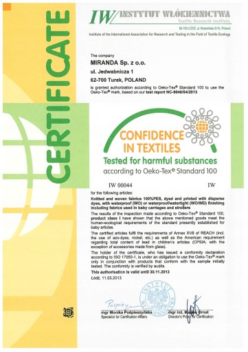 Kupując produkty z certyfikatem Oeko-Tex® oraz oznaczeniem CE, masz pewność, że produkty te nie zawierają żadnych substancji szkodliwych dla zdrowia Twojego dziecka i jak i dla środowiska.