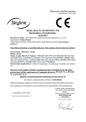 ☑️ Rozstaw między nogami huśtawki: 103 cm