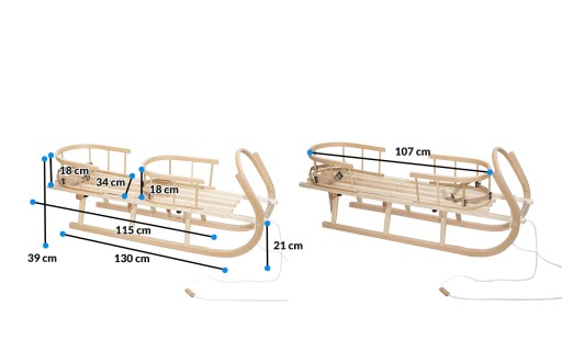 ⛄Wymiary sanek: długość 130 cm, szerokość 34 cm, wysokość całkowita 39 cm