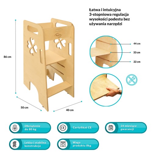 Pomocnik kuchenny Kitchen helper dla dziecka Solidny Regulacja biały POLSKI