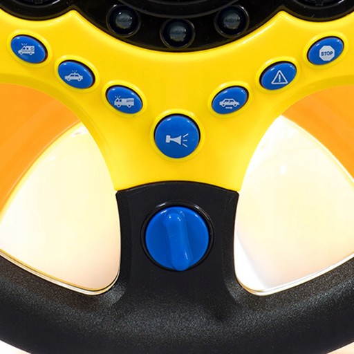 Zabawna, wytrzymała, interaktywna kierownica z wieloma realistycznymi funkcjami, takimi jak włączanie światła, przycisk alarmu.