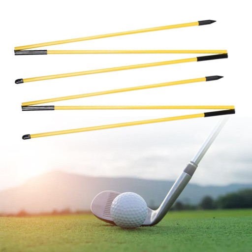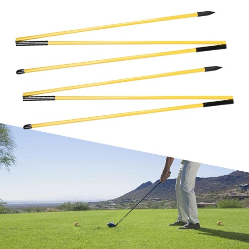 [PRAKTYCZNY PROJEKT]: Pręty wyrównujące do golfa mają spiczastą końcówkę do łatwego wbijania w ziemię i przygotowania do treningu mrugnięcia, ćwiczeń uderzania piłką i nie tylko, z gumowymi nakładkami na drugim końcu. Urządzenie treningowe wybierane przez profesjonalistów.