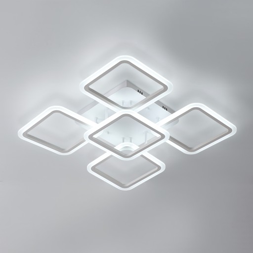 Ta biała lampa sufitowa LED ma dwuwarstwową strukturę i nowoczesny i prosty design. Pięć kloszy, które są emitowane na dwie jednostki, które powodują efekt bardziej uniwersalny, a jednocześnie emitują zimne białe światło o barwie 6000 K. Miękkie światło tworzy ciepłą atmosferę w całym domu. Nowoczesny i stylowy wygląd, idealny do wykończenia domu i obiektów komercyjnych.