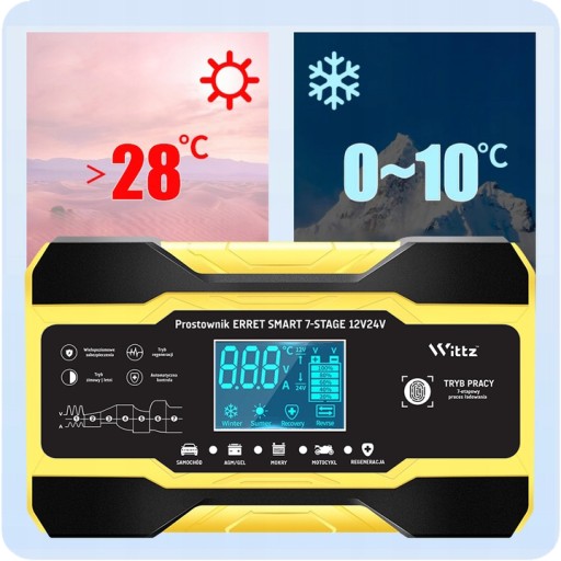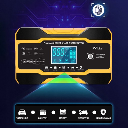 ✅ SZYBKIE ŁADOWANIE ✅NAPRAWIANIE AKUMULATORÓW 12V i 24V ✅PROSTY W UŻYCIU ✅WYŚWIETLACZ LCD ✅KOMPAKTOWY