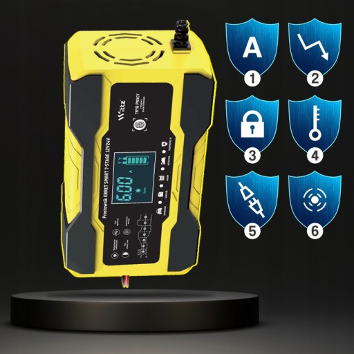 Prostownik został wyposażony w inteligentny mikroprocesor który w razie powstania niepożądanych sytuacji mogących skutkować niebezpieczeństwem i zagrożeniem zdrowia i życia odcina moc.