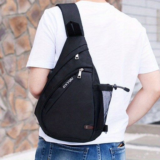 Torba na klatkę piersiową o dużej pojemności. Sportowy organizer na zamek błyskawiczny z portem USB. Wszechstronna wielofunkcyjna torba na ramię