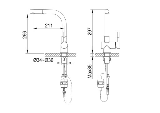 - WYSOKOŚĆ CAŁKOWITA BATERII KUCHENNEJ: 29,7 cm