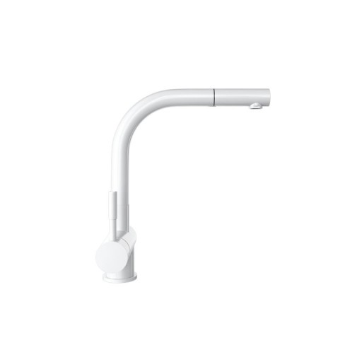 Ogromną zaletą baterii jest wyciągana wylewka z solidnym mocowaniem, która pozwoli zadbać o najwyższy komfort zmywania. Elegancki, stylowy kształt i kolor biały sprawia, że bateria znajdzie zastosowanie zarówno w nowoczesnych, jak i klasycznych kuchniach.