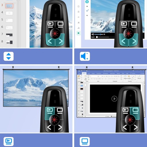 Bezprzewodowy pilot Powerpoint Clicker ma zasięg do 30 metrów, a czerwony wskaźnik do 200 metrów, dzięki czemu możesz nadal kontrolować slajdy, nawet gdy poruszasz się po pomieszczeniu podczas prezentacji lub nauczania. (Niezalecane do ekranów LED, LCD i telewizorów).