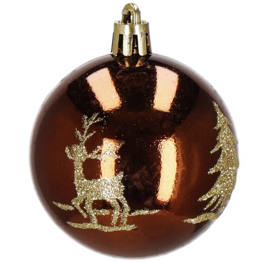 - 6x bombki połyskujące - brązowe + złote brokatowe wzorki - 6 cm
