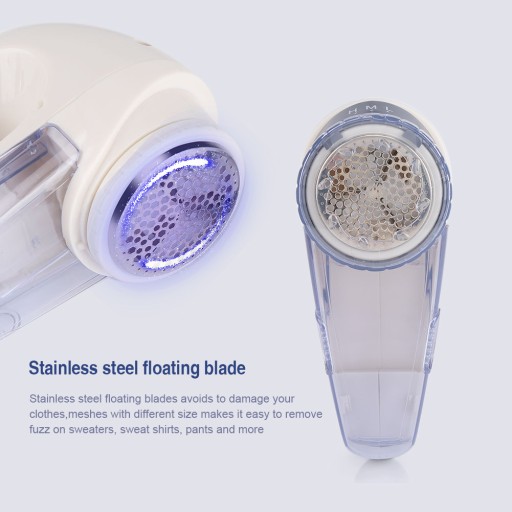 4. Pływające ostrza ze stali nierdzewnej zapobiegają uszkodzeniu ubrań, a oczka o różnej wielkości ułatwiają usuwanie zamuszeń ze swetrów, bluz, spodni i nie tylko