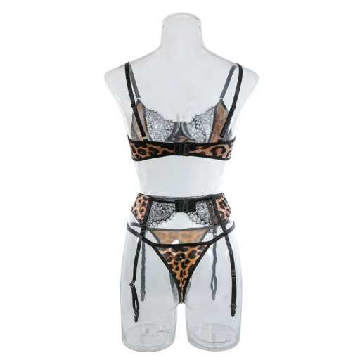 Пояс с подвязками, комплект нижнего белья с леопардовым принтом, кружевное нижнее белье.