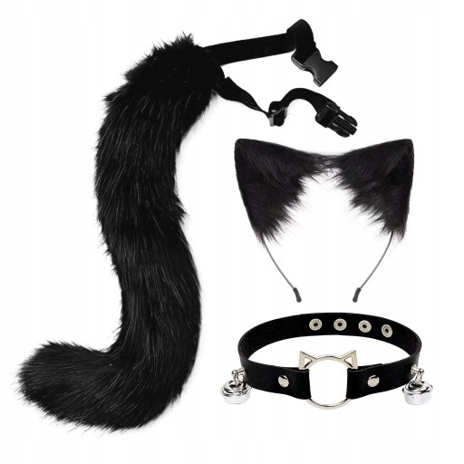 Rozmiar: długość ogona 50 cm/19,7 cala, ucho 12x8 cm/4.7x3 cala, choker 43x2.4 cm/16.9x0.9 cala