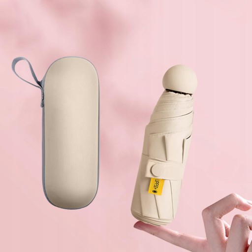 Parasol słoneczny do torebki Ochrona przeciwsłoneczna Mini parasol składany Kompaktowy parasol beżowy z etui